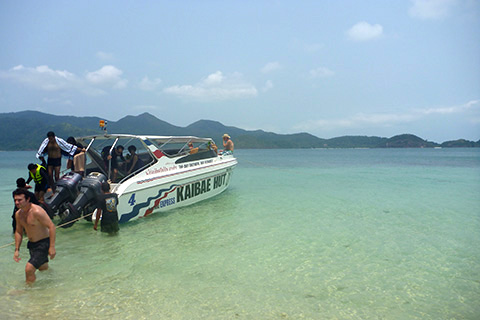 200馬力のエンジンが2基搭載された25人乗りくらいのモーターボートの客の8割りはファラン、残りはファランに連れてこられたタイ人女それに中国人とタイ人家族。