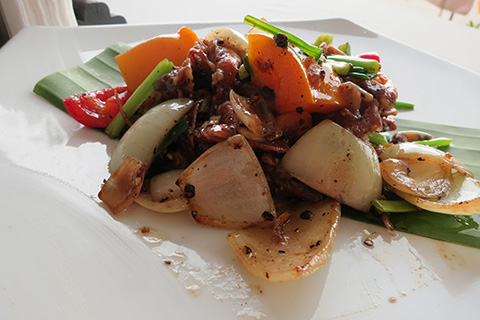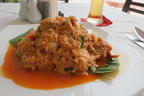 脱皮したばかりの柔ら蟹(プーニム)を使った黒コショウ炒め。