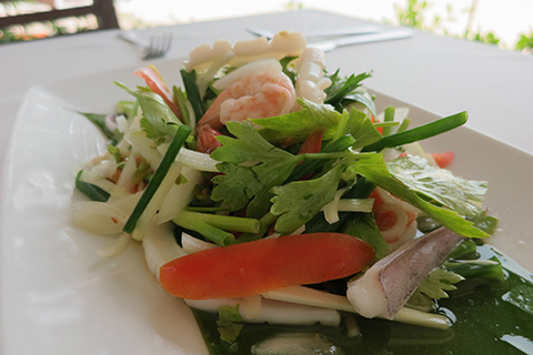 ビーチ定番のシーフード入り"酸っぱ辛い"タイサラダ。
