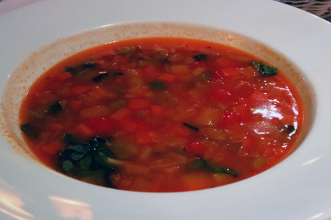 ドリンクリストを見せてもらうとハウスワインはなくワインは最低でも一杯380THBとかだったのでビアシンにしてミネストローネとTボーンステーキを注文。