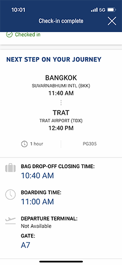 NokAirと違ってBangkok Airwaysはモバイルチェックインでサクサク進む。