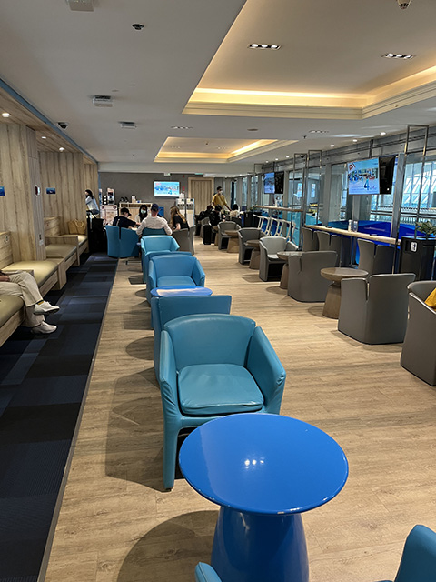 PGのラウンジは平民用ラウンジはコロナ対策で座席間隔が広くとられていた。