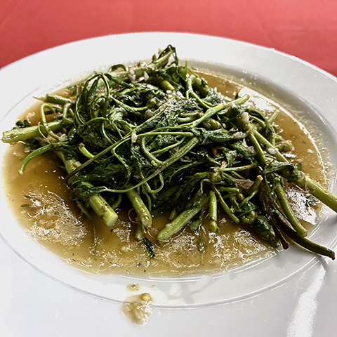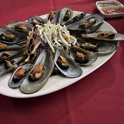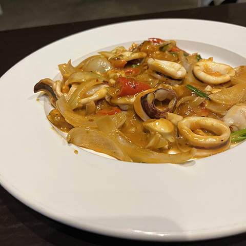 残念ながらBBQメニューはないようだったので自分にとって定番のパットブロッコリーグン(ブロッコリーも最初はないといわれた)と好物のプラムックカイケム(イカの塩玉子炒め)を注文。