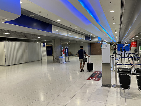 車の都合で2時間半も前に連れてこられたトラート空港、普段は軽食とコーヒーの用意されている平民ラウンジはサービス提供中止中でペットボトルの水だけが置かれていた。
