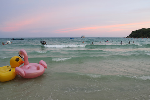 昼間は暑いし日焼けするのでタイ人の気持ちもわかるようになって来たけどタイ人は夕方になると浜辺に現れてくる。