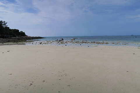 食後にビーチに出てみると引き潮で先の方の岩場がのぞいていた。