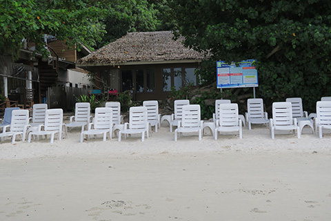 この宿のビーチチェアは多分100脚以上あるだろうけど午前中に客はほとんどおらず。