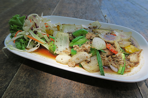 昼はホテルのレストランでキャベツ炒めと蟹肉の黒胡椒炒め。