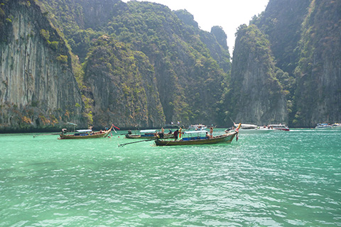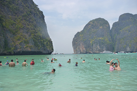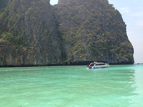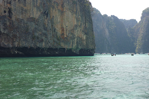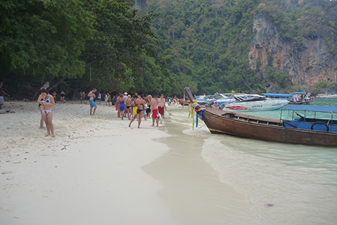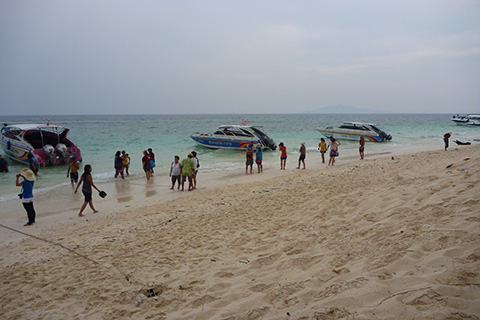ここは岩山に挟まれたピーピー・レー島の湾をボートで抜けるだけだが、この狭い湾内に50隻は越えていそうなボートがやってきていた。