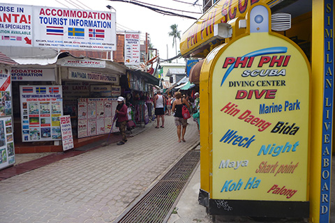 ここで1時間半も時間があるようだったが桟橋付近は船が多すぎて水に入る気にもならなかったのでカオサンのようなピーピーの街をぶらぶらする。