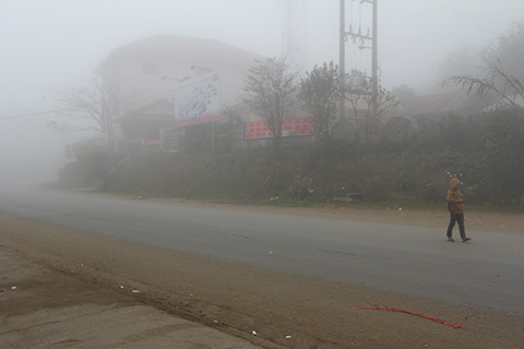 朝飯を食べに外に出ると街はすっぽりと霧に覆われフリースを着ていてもまだ寒かった。
