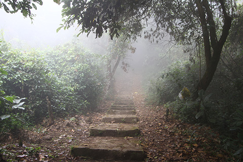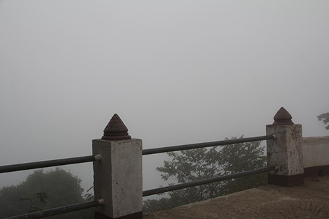 いつものようにハンカチを汗でグショグショにしながら900段近くの階段を上っていった(車があればそれで頂上まで来ることも可能)が、チェディのある頂上は濃い霧に覆われ下界は全く見えず。