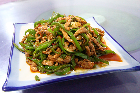 ここはメニューがない(というか中国語メニューしかないから外国人とわかると"ない"と言ってるのかも知れない)ので言葉で伝えられる数少ない単語の青椒肉絲と麻婆豆腐を用意しておいて注文すると、いったん厨房に伝えに行った男が「豆腐はない」と戻ってきた。