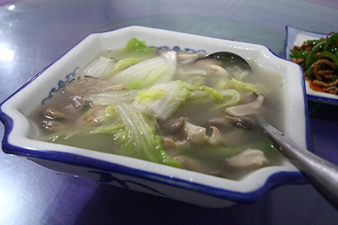 それなら仕方ない、とまた冷蔵庫の前まで行き白菜と椎茸を指し示して湯(スープ)にしてもらうようジェスチャー混じりで伝える。