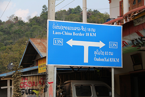 滝を後にしてルアンナムターに戻りかけると「ボーテン 49km」という標識が現れた。
