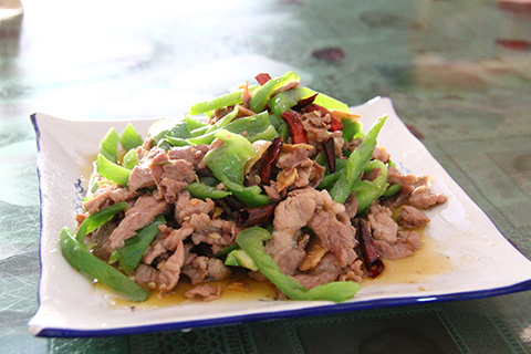 ラオ語(タイ語)が通じないので「青椒肉絲」とだけ告げる。