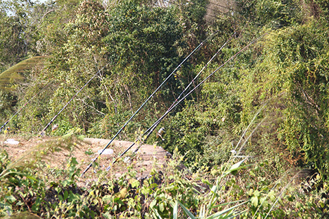 そうしてやってきた小さなダムに人影は少なく5、6本の釣り竿が無人で立てられていた。