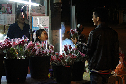バレンタインデーに男性から女性にバラの花を贈るというのはタイと同じだ。