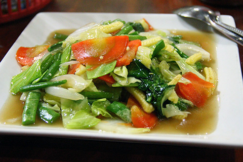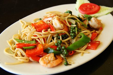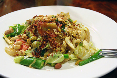 パッタイとパットパックルアミットを注文。ビアラオとで42,000LAK=168THB。やっぱり安いね。