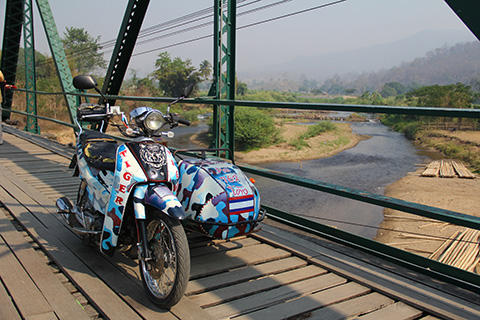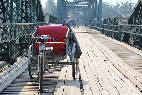木の板を渡しただけの橋には記念写真用サムローがポツンポツンと置かれていた。
