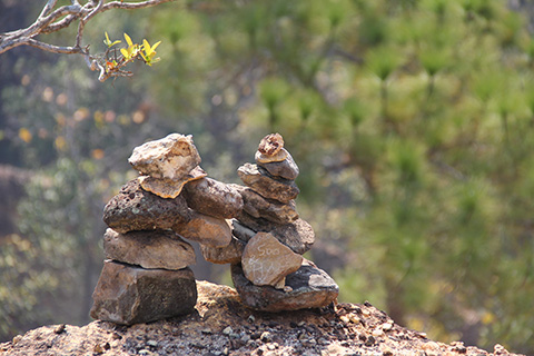 ハンカチで汗を拭きつつ上にたどり着くとそこではヒッピー風なファラン男が日陰もないクソ暑い中、座禅して瞑想をしていた。