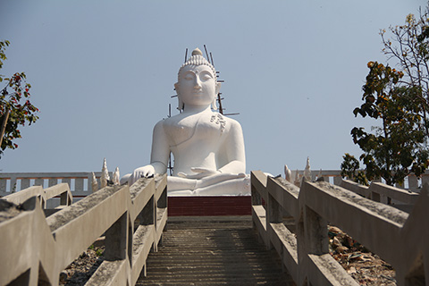 駐車場までバイクを乗り入れるとそこから先はまだ建築中の階段が続きその上には真っ白な仏像が見え隠れしていた。