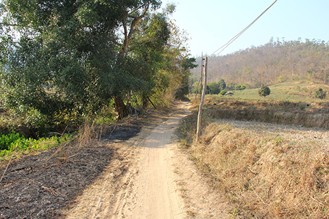 すると滝を越えたくらいはまだマシだったが進むにつれて農村の中の未整備路になり、その先は完全な林道になってしまっていた。