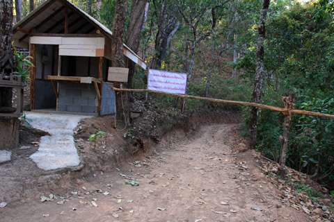 気持ちのいい排気音をさせながら自然の中の道をそのまま進んでいくとメーイェン寺院という看板が現れた。