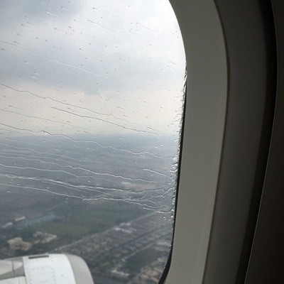 タイスマイル機がドンムアンに向けて高度を落としていくと窓にツーーっと雨が流れた。