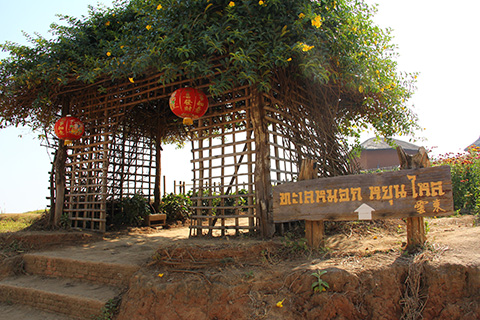 町に戻る途中で少数民族村っぽい大きな看板があったのでちょっと寄ってみる。