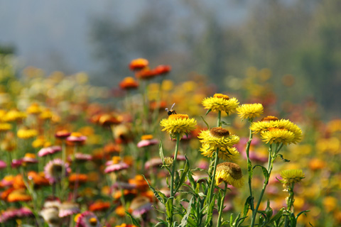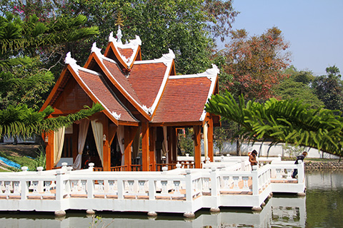 両側に花が咲きほこる歩道を登っていくとじいさんが「20THB」と料金を徴収していた。