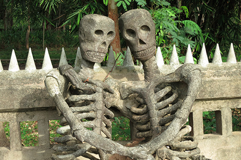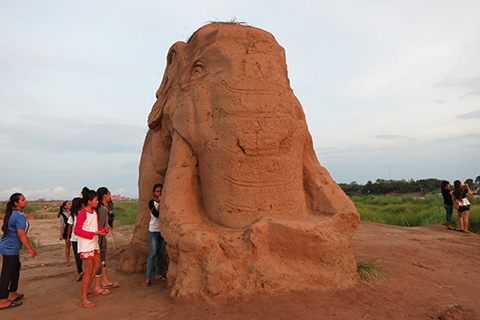 ピーマイ(ラオ正月)の際に作られたらしいオブジェがメコン川の河原に残っており格好の記念写真撮影場所となっていた。