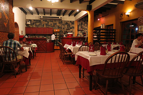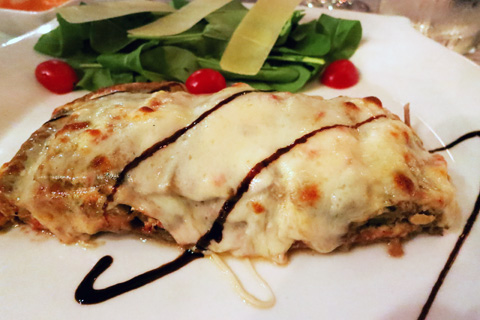 高いかもとある程度覚悟したが、ナスの重ね焼き、スパゲッティアラビアータ、ワインのデキャフェ500mlで207,000LAK=800THBとリーズナブル。