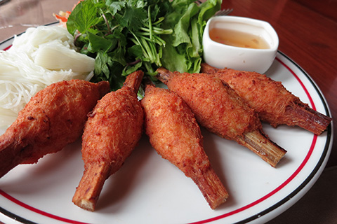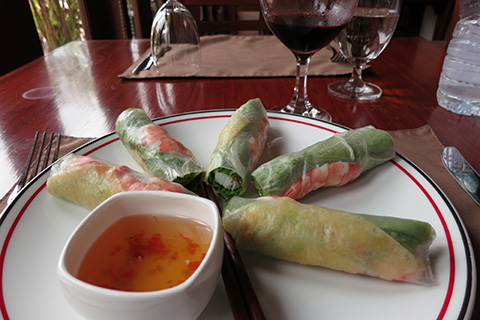 海老のすり身の串焼きも生春巻きも店の雰囲気同様に上品な味。