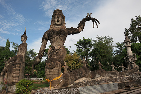 ヴィエンチャン側にも同様なものがあるがそこを造った人が(パテトラオによる共産革命が終結した)1975年にタイに亡命しこちらに作り直したものだと歩き方に書かれていた。