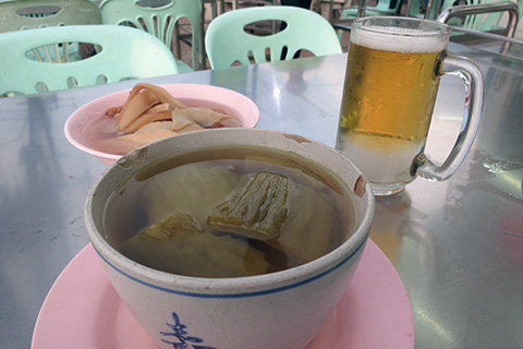 好物のゲーンチュート・マラ(苦瓜のスープ)、ノーマイ・チーン(筍と鶏足のスープ)、ヤム・ムーヨーを頼んでビアシン。