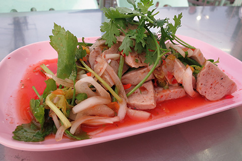 ヤム・ムーヨーはタイ人向けでかなり辛めでビアシンには合う。