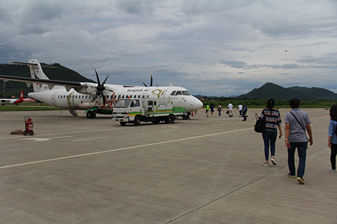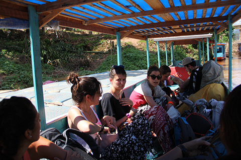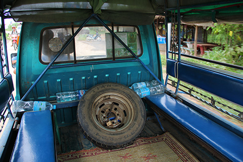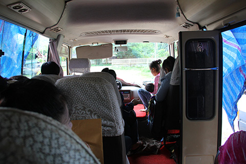 バスターミナルまでソンテウの送迎があるだけでじつは37,000kのマイクロバス 当然のようにACは効かず。 |
