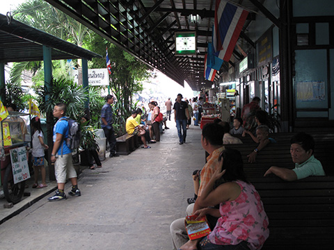 そのまま雑貨屋やぶっ掛け飯屋などが並ぶそのソイに入ってみると、何の仕切りもないままにそのまま駅の待合席になっていた。