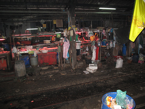 露店の隙間から狭いソイの奥をのぞくと通りからちょっと引っ込んだところにタラート(市場)がある。