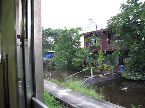 ウォンウィエンヤイからしばらくは江ノ電のように民家の軒先を掠めるように進んでいくが、3つ目のワットサイ駅あたりからは昔ながらの、エンジ色の板壁・高床式の家屋が見られるようになっていく。