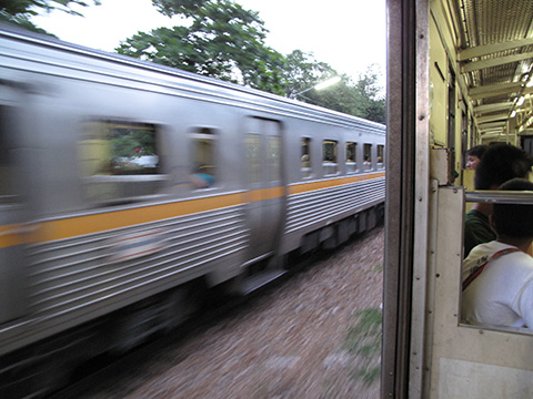 切符を握り締めたまま、せめて線路の両側にある露店の写真でも撮っておこうとカメラを構えるや発車を知らせるベルがなり、しぶしぶ車内に乗り込むとまもなく走り始めた。
