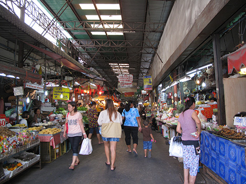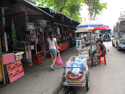 そのあたりにはサイクロークや揚げ物、スナック類などの売店が並んでおり道ばたにソンテウが4、5台客待ちをしている。