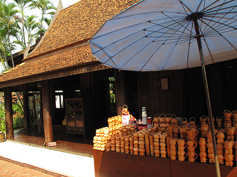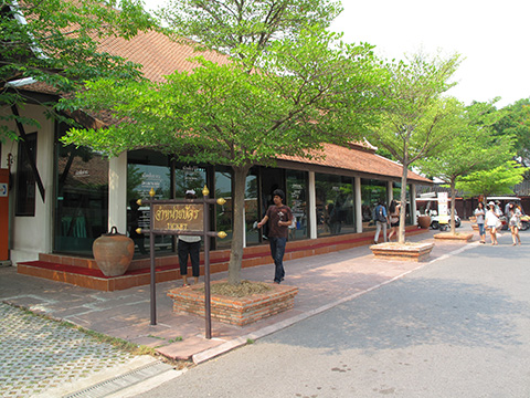 土産物屋や床屋、喫茶店などが並んでおりタイシルクの実演販売所もあったがさすがにここは実物大。