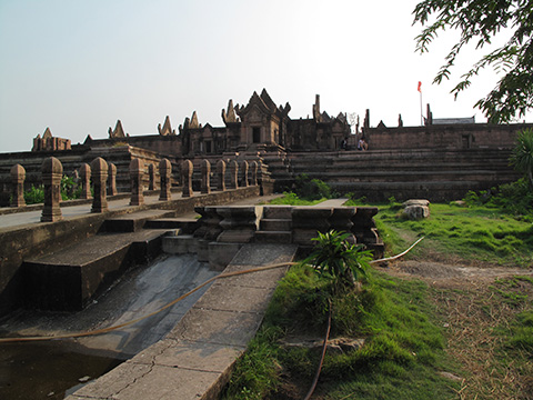 するとそこは予想通り、最近もカンボジアとの国境紛争の起こっているカオプラビハーンで、目の前には遙かなる石段が続いていた。