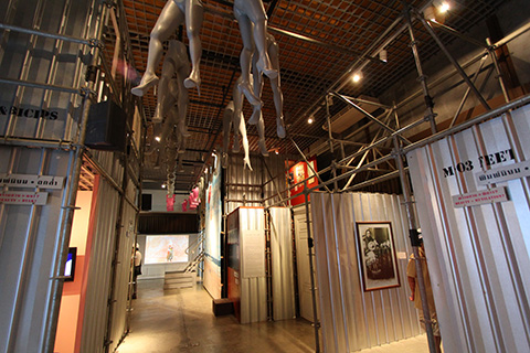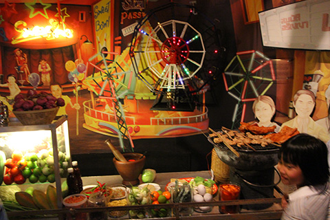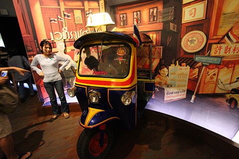 現在のタイを現しているらしい次の部屋には屋台やトゥクトゥクが置かれ、タイ人が次を争うようにして記念写真を撮っている。