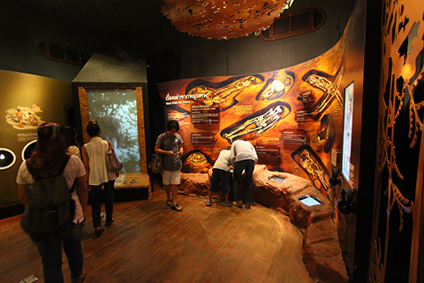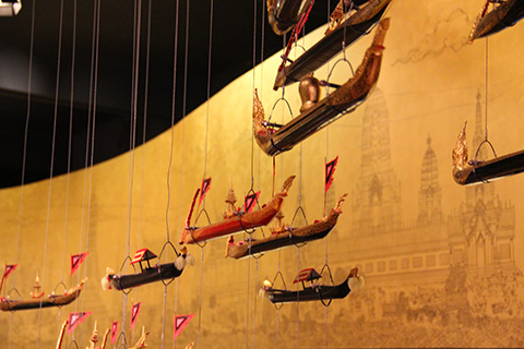 天井からいくつもの船の模型のぶら下がっているアユタヤ時代の繁栄を表した部屋が現れた。