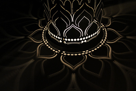 次の狭く薄暗い部屋は仏教を現した部屋。こちらは仏教云々よりもオブジェの照明が美しかった。
