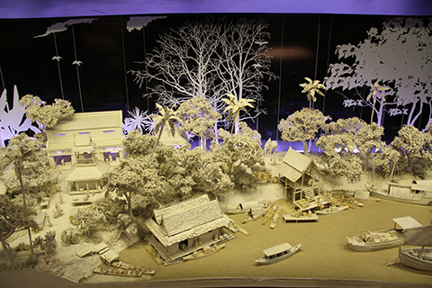 アユタヤといえば日本人にとっては山田長政が有名だが、この時代には日本だけでなく中国、オランダ人、ポルトガル、フランスなどさまざまな国から商人がやってきていたらしく、それぞれの民族が集落を作って暮らしていた様子が各民族の衣装付きで紹介されていた。