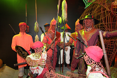 当時の戦闘服を着て防具や槍を持った針金細工の人形が並んでいて、その向こうに象もいるのがタイらしい。